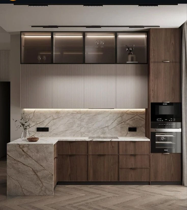 Mutfak mimarisinde ergonomik akış ve teknik donanım önceliği.