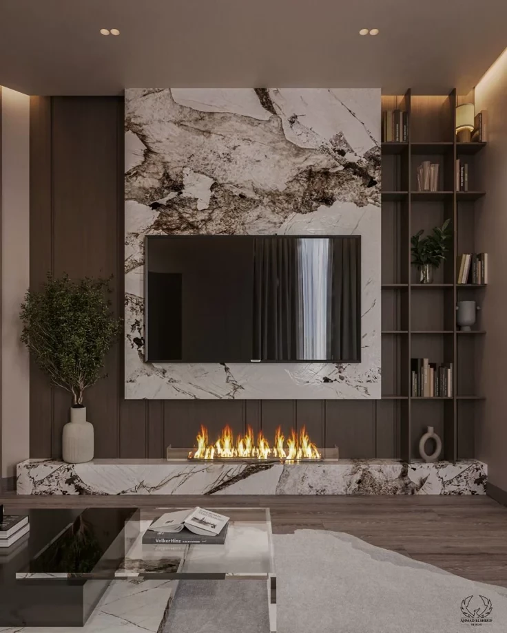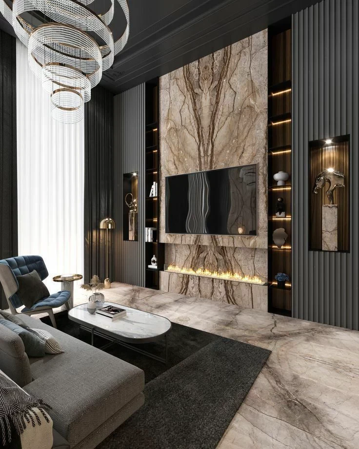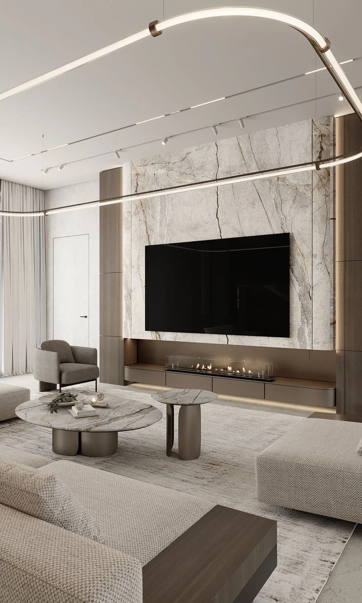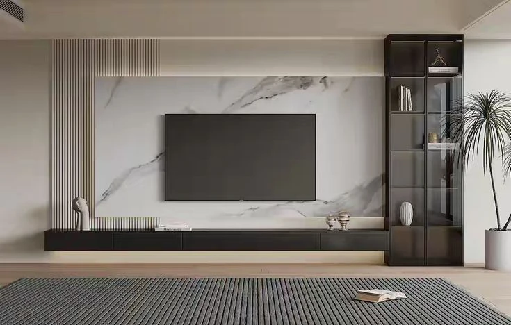 TV ünitelerini, sıradan bir mobilya olmaktan çıkarıp mekanın mimari kimliğini belirleyen birer “Medya Duvarı” olarak kurguluyoruz. Turuncu Atölye olarak; doğal mermerin eşsiz dokusunu, modern çıtalı paneller ve entegre aydınlatma sistemleriyle kusursuz bir dengede birleştiriyoruz.